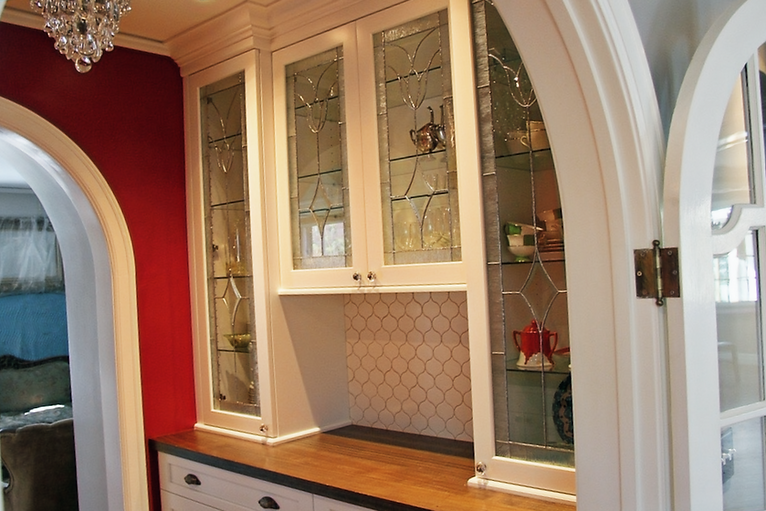 Traditional mosaic stained glass transom. 10" x 35'. For sale $260.00